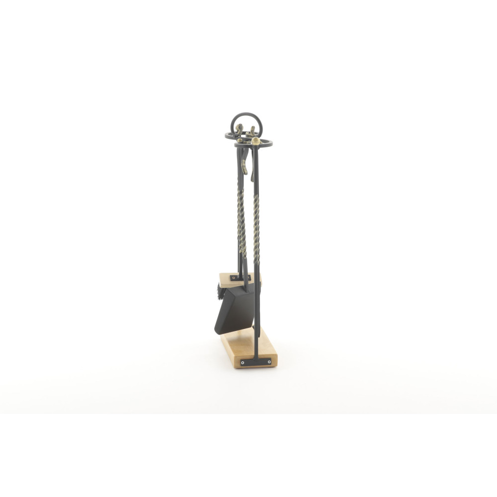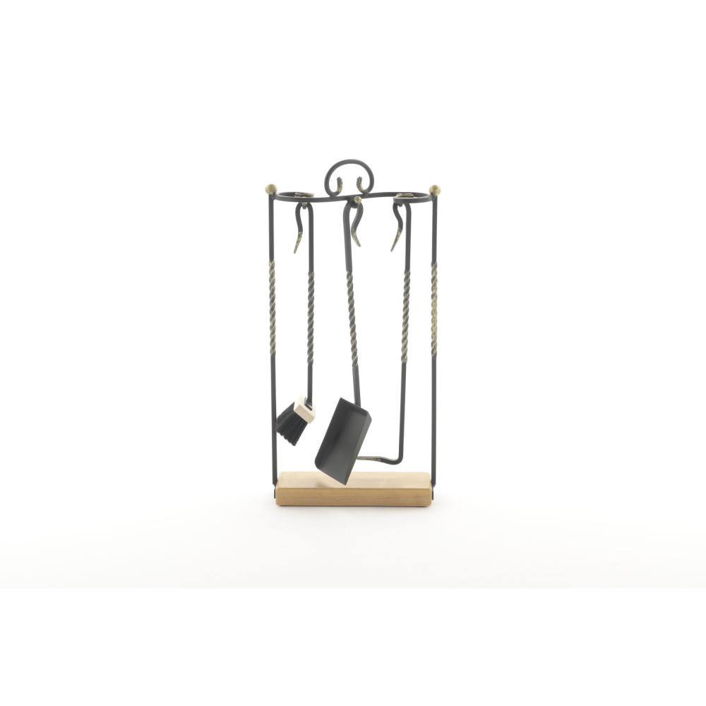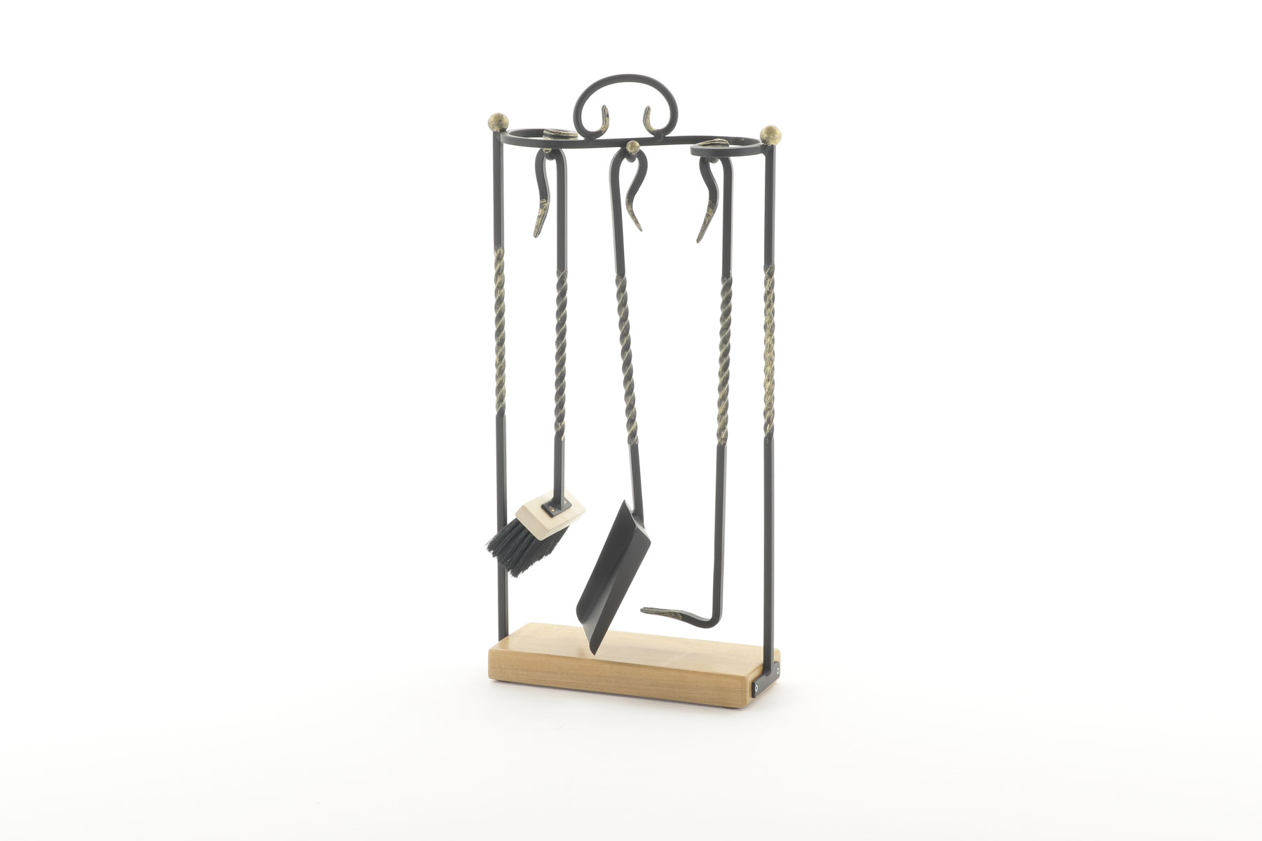 Каминный набор АМС один из основных и важных аксессуаров по уходу за камином либо топкой печи. Набор для камина включают в себя 4 предмета: подставку, кочергу, совок и щетку. Изделия изготовлены из металла, окрашены термостойкой краской черного цвета. Материал основания-подставки – натуральная древесина лиственных пород, покрытая пропиткой и лаком. На некоторых элементах золотая патина для придания красоты. В дополнения к каминному набору можно приобрести дровницу или переноску для дров, которые выполнены в едином стиле.