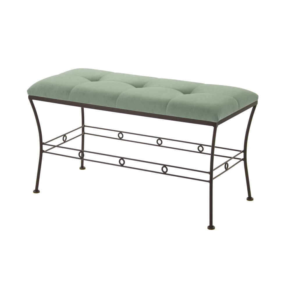 Кованая банкетка серии "ADEL" представляет собой прочный металлический каркас с мягким сидением и декоративной строчкой в тон сидения или цвета основания. В металлическом основании используется профильная труба для придания легкости изделию, а также цельный металлический кругляк для надежности и долговечности. Металл покрывается грунтом и эмалью от немецкого производителя "Armopur", что придает изделию блеск и защищает от коррозии. Войлочные подпятники на ножках банкетки позволят бережно эксплуатировать ее на любом покрытии пола.