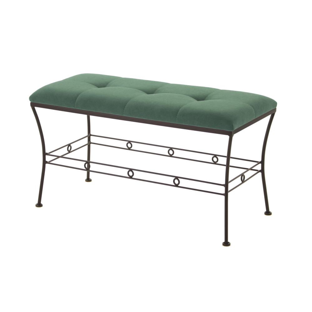 Кованая банкетка серии "ADEL" представляет собой прочный металлический каркас с мягким сидением и декоративной строчкой в тон сидения или цвета основания. В металлическом основании используется профильная труба для придания легкости изделию, а также цельный металлический кругляк для надежности и долговечности. Металл покрывается грунтом и эмалью от немецкого производителя "Armopur", что придает изделию блеск и защищает от коррозии. Войлочные подпятники на ножках банкетки позволят бережно эксплуатировать ее на любом покрытии пола.