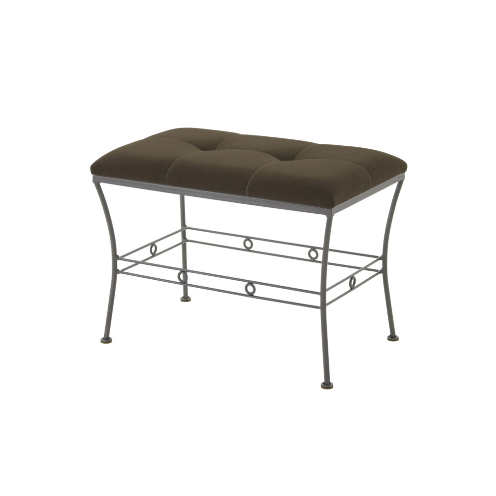 Кованая банкетка серии "ADEL" представляет собой прочный металлический каркас с мягким сидением и декоративной строчкой в тон сидения или цвета основания. В металлическом основании используется профильная труба для придания легкости изделию, а также цельный металлический кругляк для надежности и долговечности. Металл покрывается грунтом и эмалью от немецкого производителя "Armopur", что придает изделию блеск и защищает от коррозии. Войлочные подпятники на ножках банкетки позволят бережно эксплуатировать ее на любом покрытии пола.