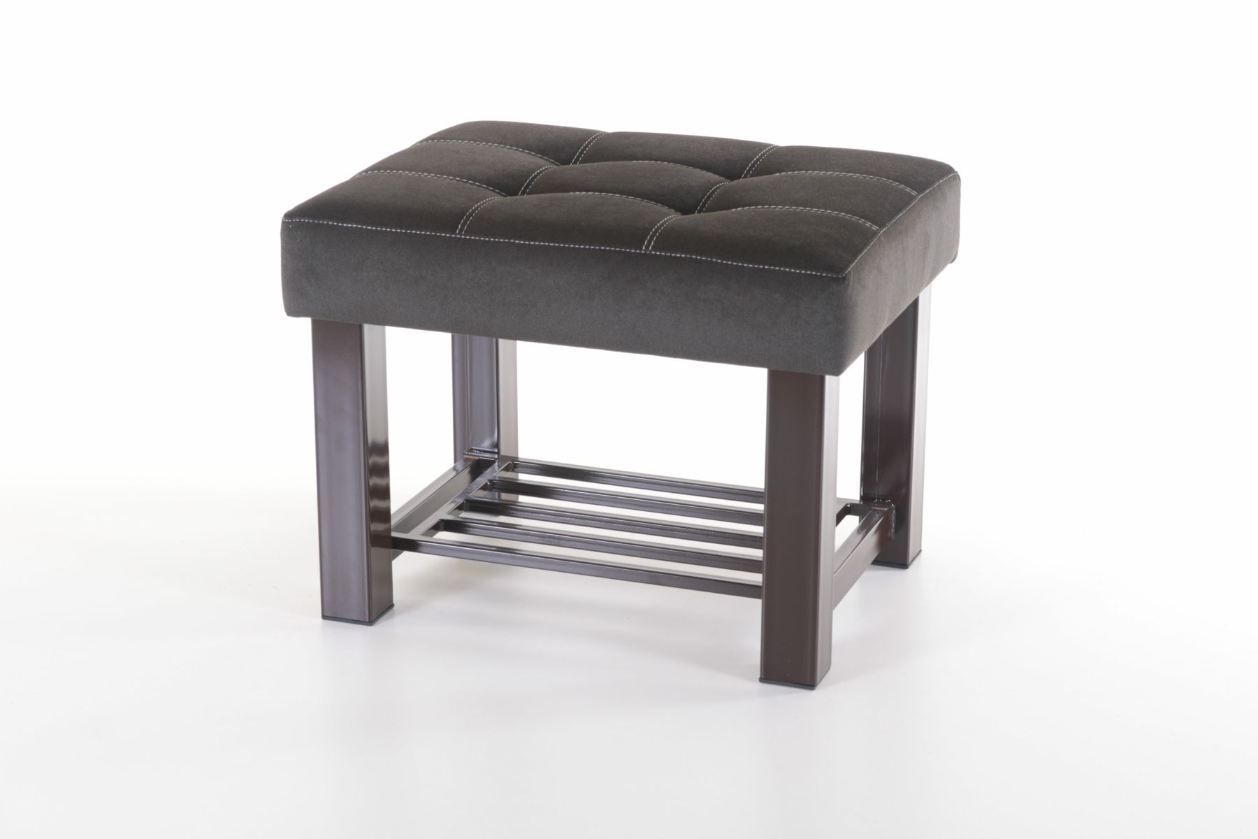 Каркас изготовлен из металла, материал обивки сидения – кож.зам. премиум класса либо ткань (велюр) на Ваш выбор. Двойная строчка пуфика придает изделиям не только красоту, но и надежность, поскольку выполнена высокопрочной полиэфирной нитью, которая устойчива к истиранию и обладает отличной светостойкостью. Пластиковые подпятники на ножках позволят бережно эксплуатировать мебель на любом покрытии пола.