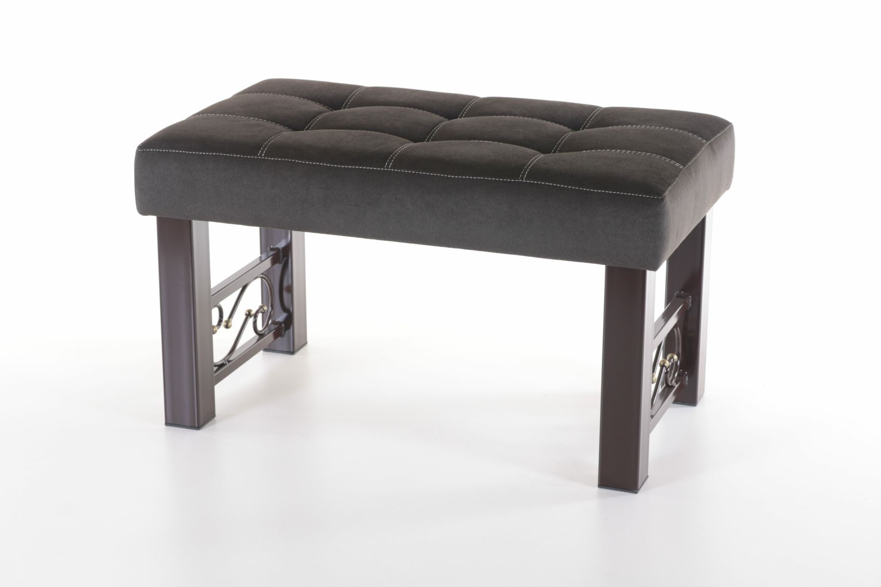 Каркас изготовлен из металла, материал обивки сидения – кож.зам. премиум класса либо ткань (велюр) на Ваш выбор. Двойная строчка пуфика придает изделиям не только красоту, но и надежность, поскольку выполнена высокопрочной полиэфирной нитью, которая устойчива к истиранию и обладает отличной светостойкостью. Пластиковые подпятники на ножках позволят бережно эксплуатировать мебель на любом покрытии пола.