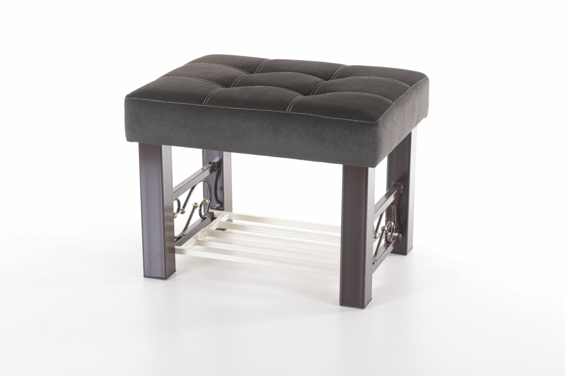 Каркас изготовлен из металла, материал обивки сидения – кож.зам. премиум класса либо ткань (велюр) на Ваш выбор. Двойная строчка пуфика придает изделиям не только красоту, но и надежность, поскольку выполнена высокопрочной полиэфирной нитью, которая устойчива к истиранию и обладает отличной светостойкостью. Пластиковые подпятники на ножках позволят бережно эксплуатировать мебель на любом покрытии пола.
