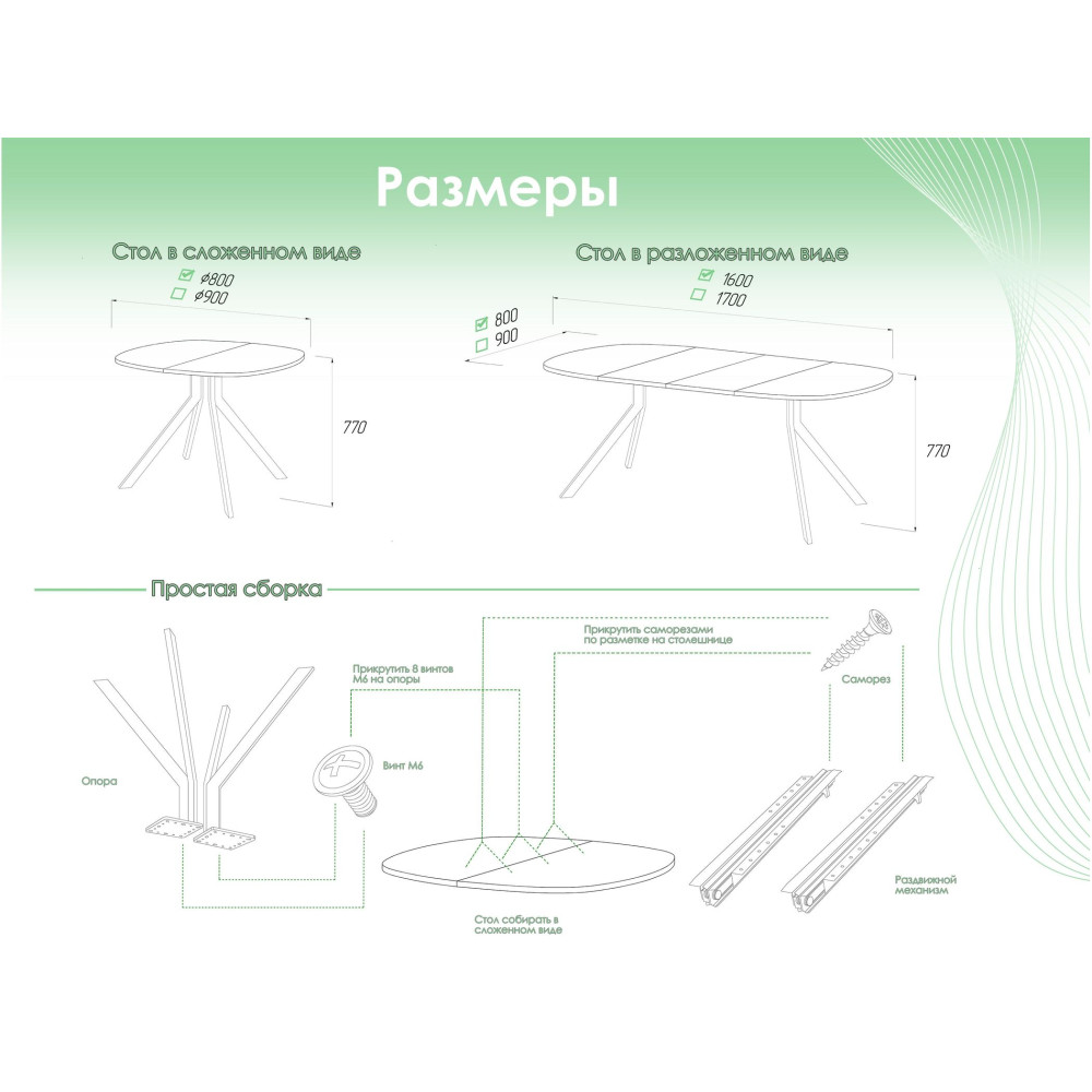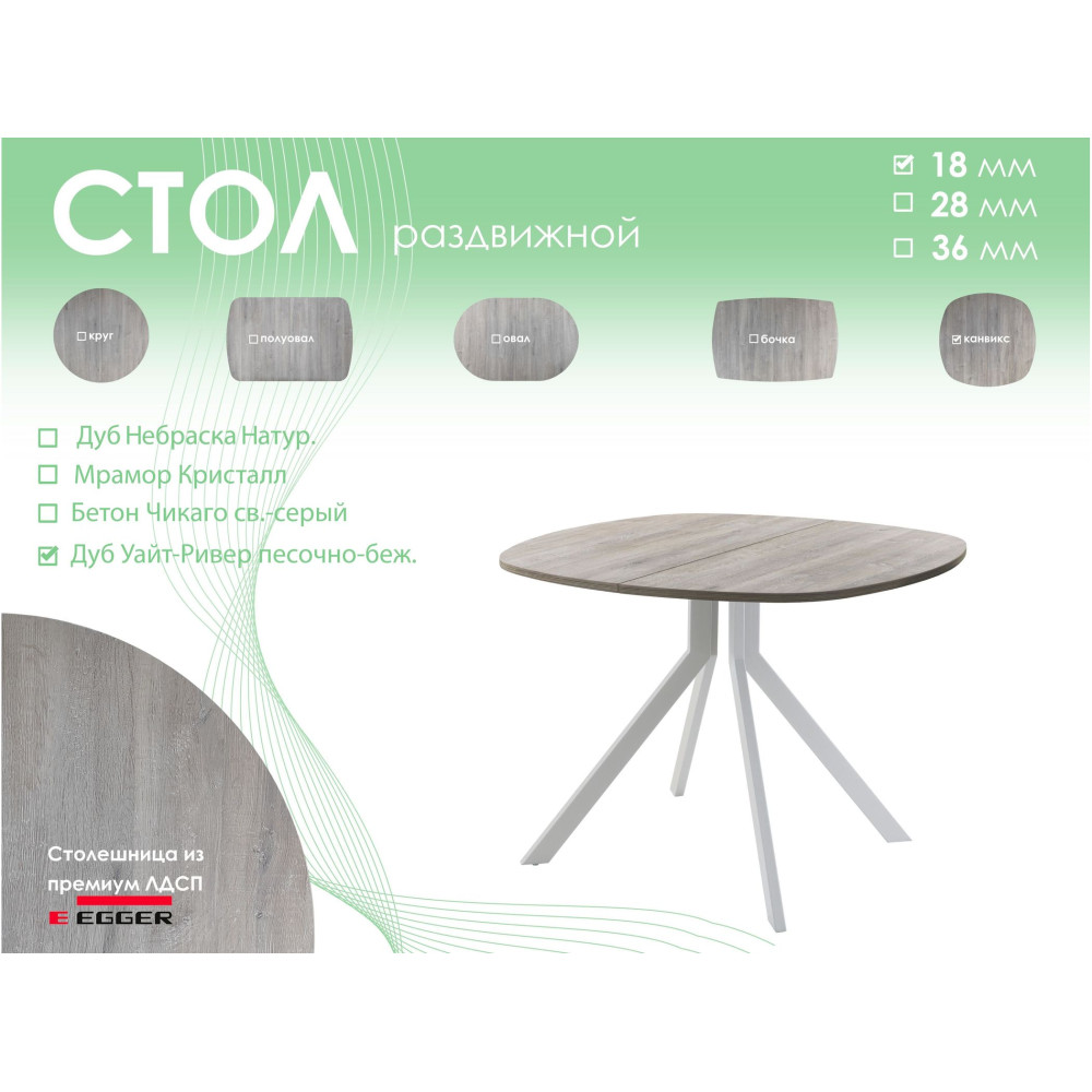Тип столаобеденный стол | Форма поставкив разобранном виде | Форма столешницыканвикс |