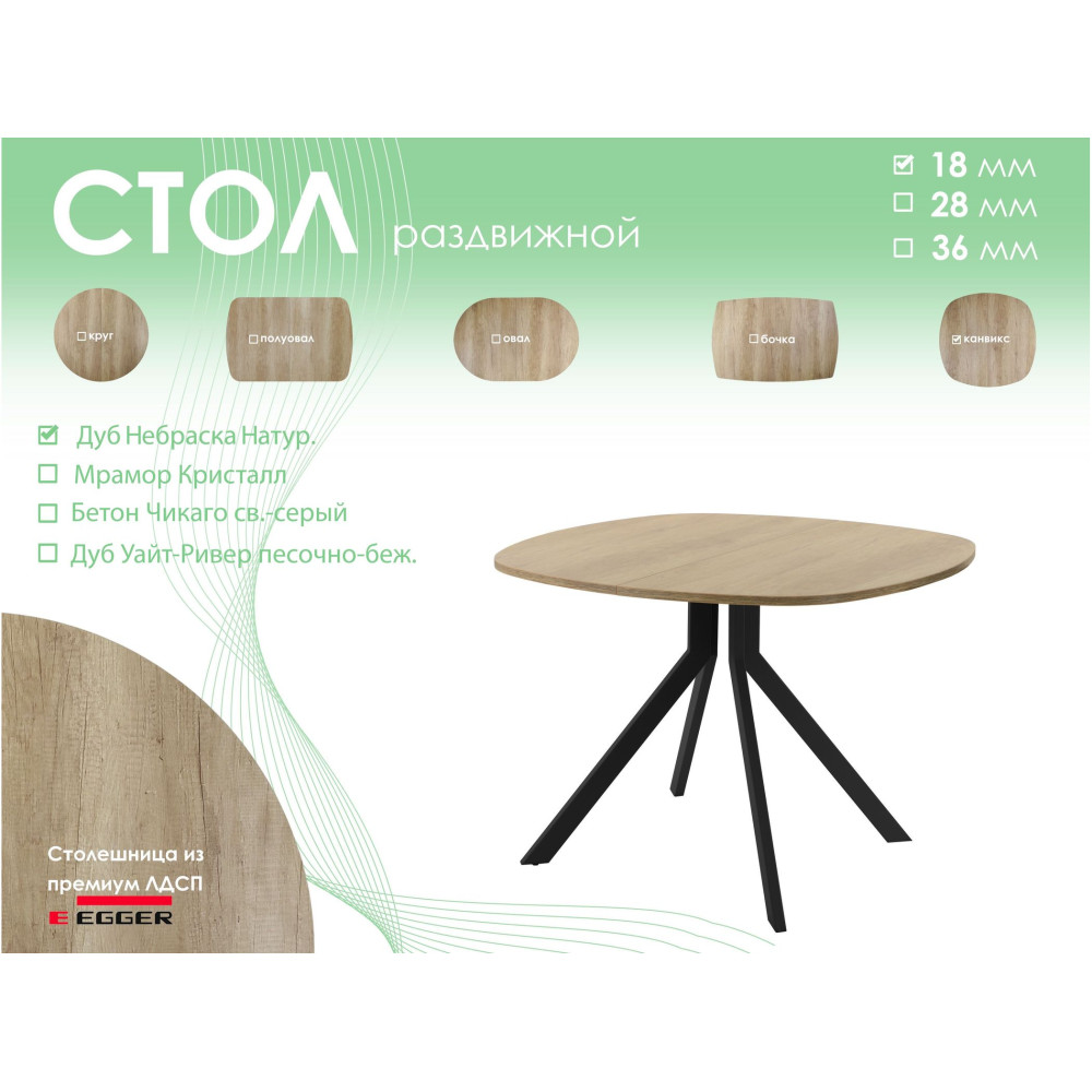 Тип столаобеденный стол | Форма поставкив разобранном виде | Форма столешницыканвикс |