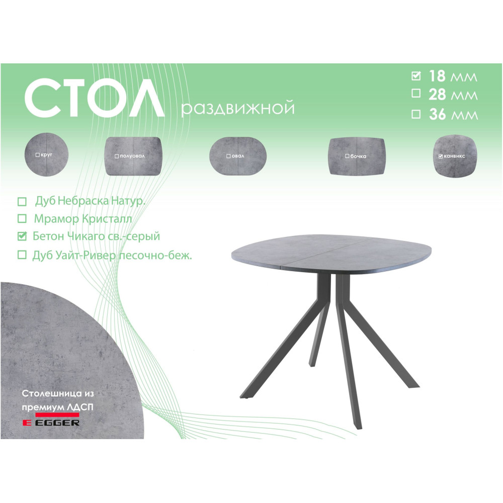 Технические характеристики Обеденный стол AMC Elite (серии SLIM) / E18(900) D7 (графит/Бетон Чикаго светло-серый)