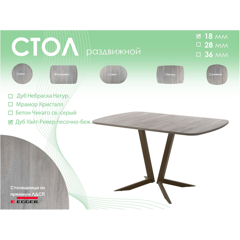 Тип столаобеденный стол | Форма поставкив разобранном виде | Форма столешницыполуовал |