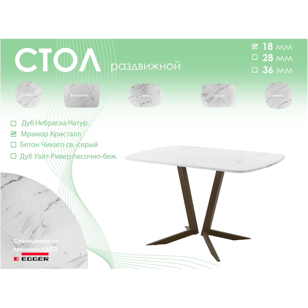 Тип столаобеденный стол | Форма поставкив разобранном виде | Форма столешницыполуовал |