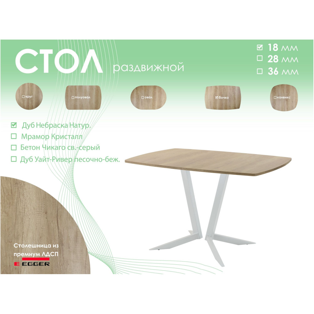Тип столаобеденный стол | Форма поставкив разобранном виде | Форма столешницыбочка |