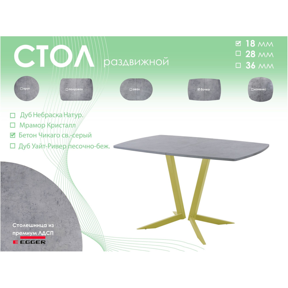 Тип столаобеденный стол | Форма поставкив разобранном виде | Форма столешницыбочка |
