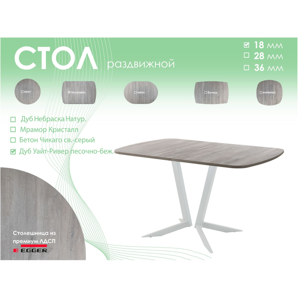 Тип столаобеденный стол | Форма поставкив разобранном виде | Форма столешницыполуовал |