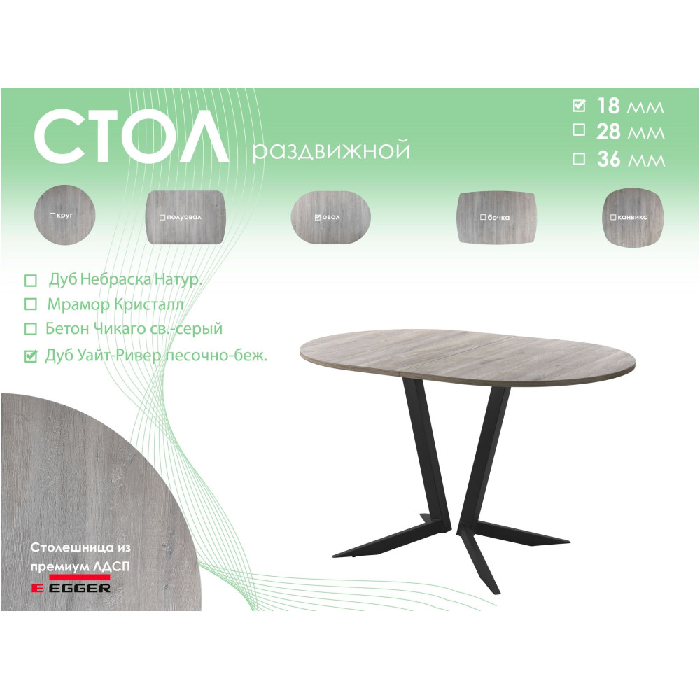 Обеденный стол AMC Elite (серии SLIM) / E19(1200) D3 (черный/Дуб Уайт-Ривер песочно-бежевый) 0 702BYN 936BYN