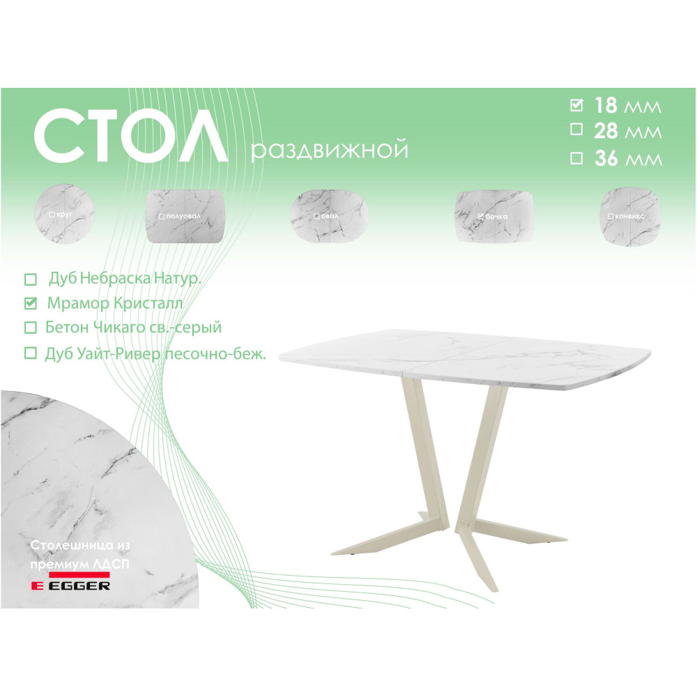Тип столаобеденный стол | Форма поставкив разобранном виде | Форма столешницыбочка |