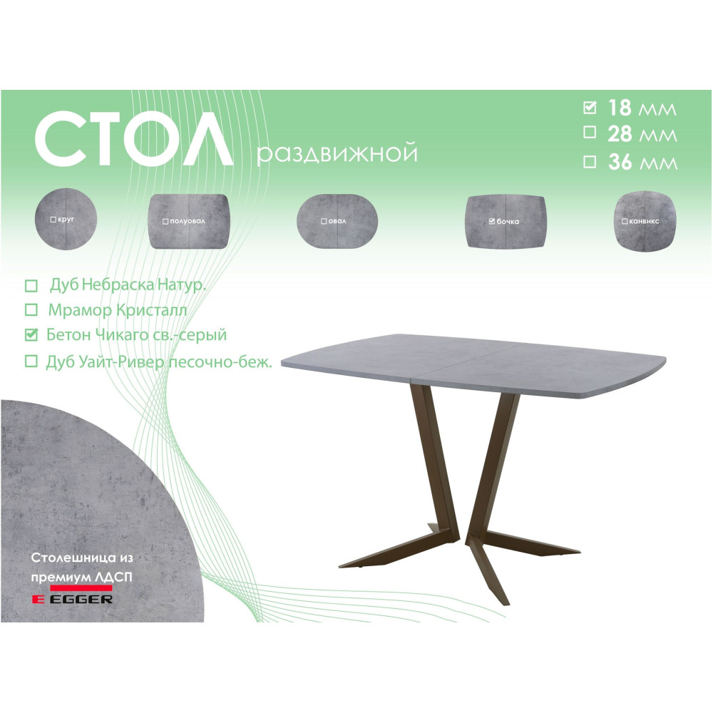 Тип столаобеденный стол | Форма поставкив разобранном виде | Форма столешницыбочка |