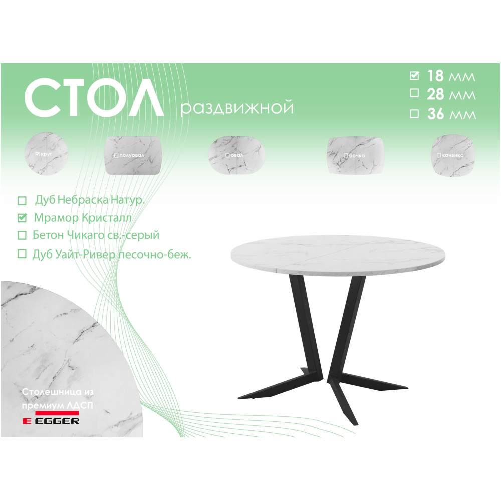 Тип столаобеденный стол | Форма поставкив разобранном виде | Форма столешницыкруг |