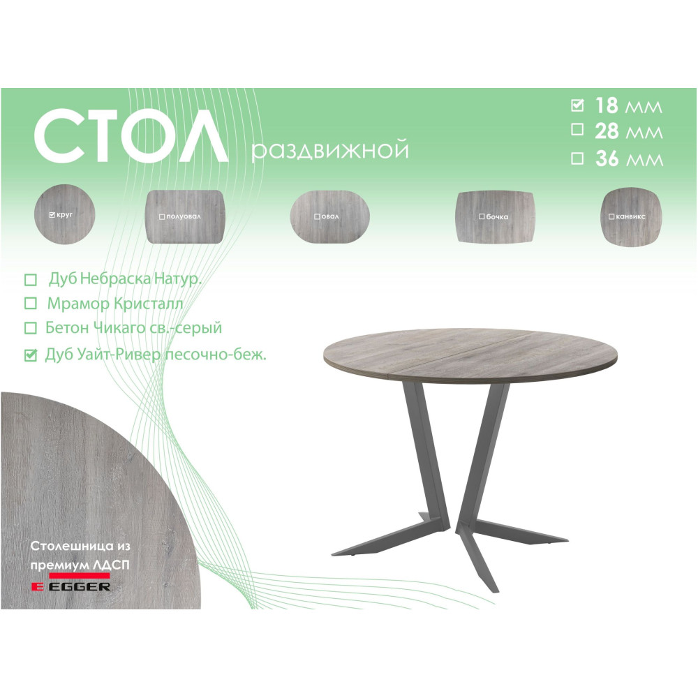 Тип столаобеденный стол | Форма поставкив разобранном виде | Форма столешницыкруг |