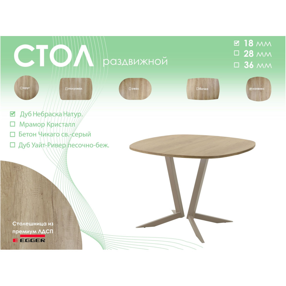 Тип столаобеденный стол Форма поставкив разобранном виде Форма столешницыканвикс