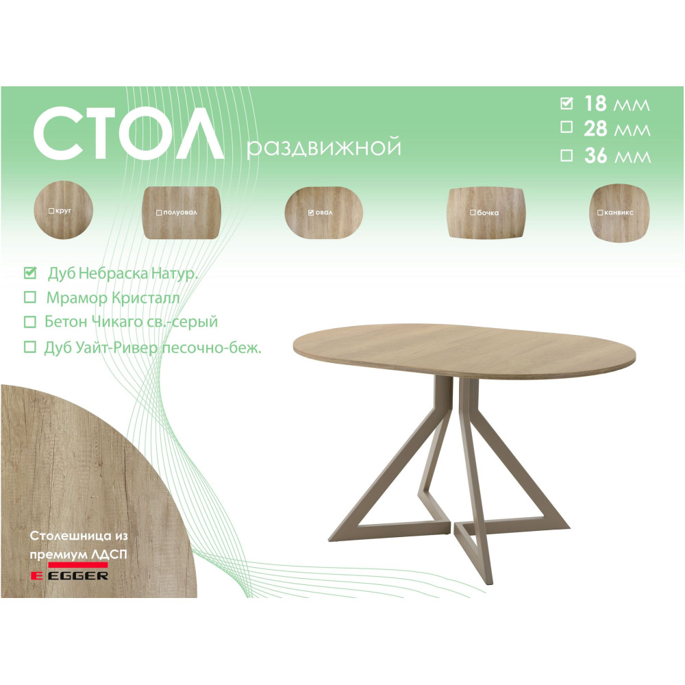 Тип столаобеденный стол Форма поставкив разобранном виде Форма столешницыовал