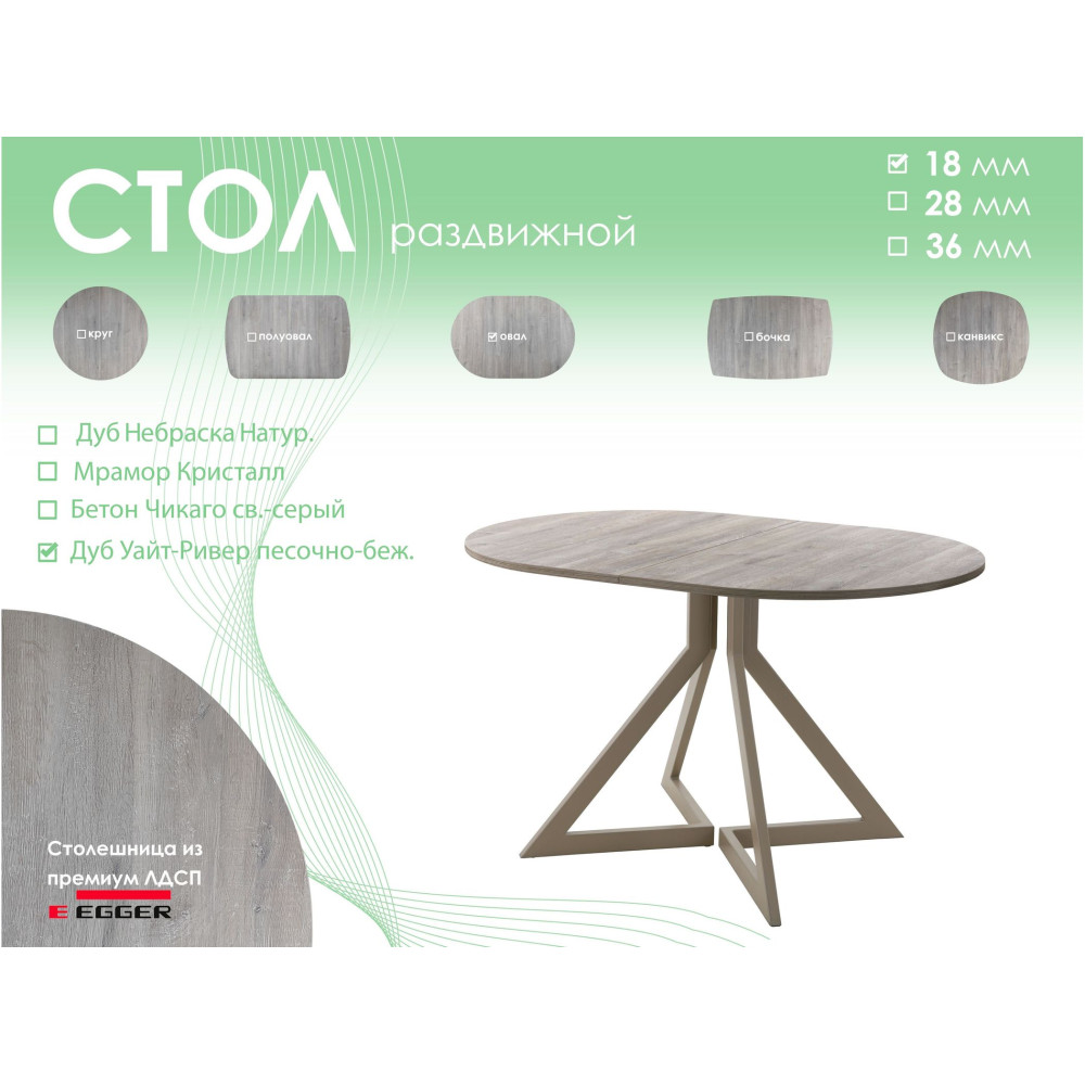 Тип столаобеденный стол | Форма поставкив разобранном виде | Форма столешницыовал |