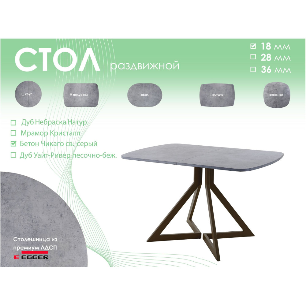 Тип столаобеденный стол Форма поставкив разобранном виде Форма столешницыполуовал