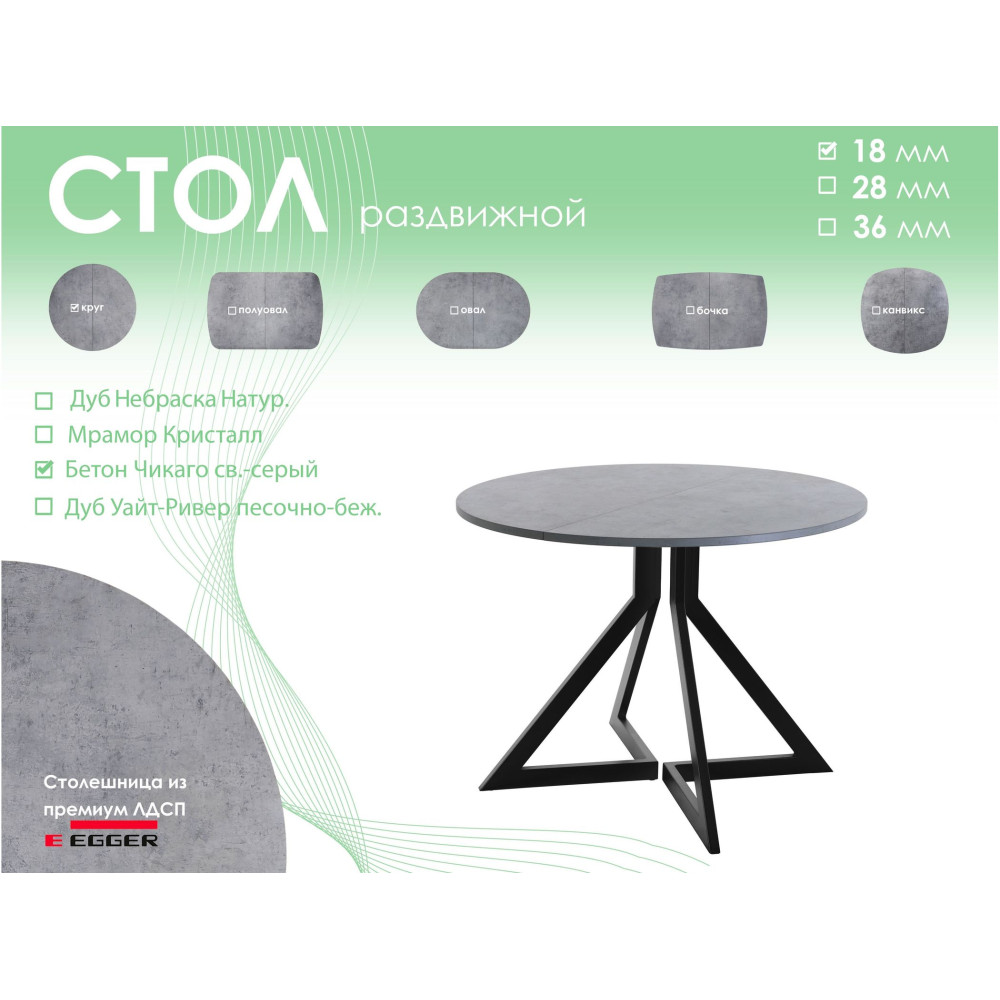 Тип столаобеденный стол | Форма поставкив разобранном виде | Форма столешницыкруг |