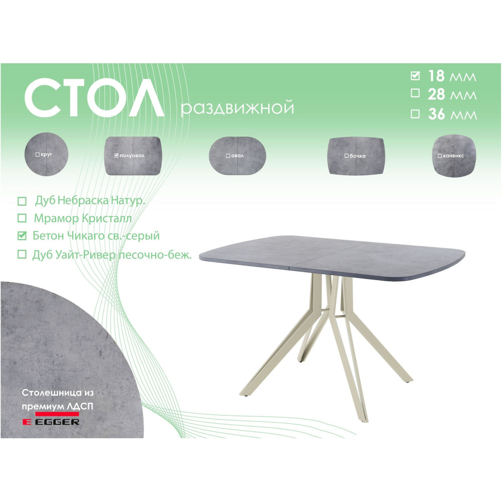 Обеденный стол AMC Elite (серии SLIM) / E21(1100) D2 (бежевый/Бетон Чикаго светло-серый) 0 678.60BYN 904.80BYN