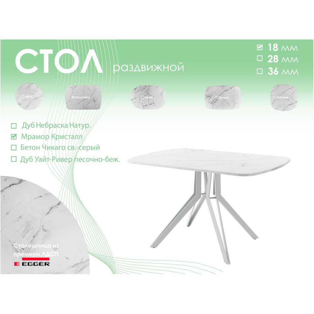 На складе Код товара: E18 800 D1vn.kod.800+400+400.3.5 Обеденный стол AMC Elite (серии SLIM) / E18(800) D1 (бежевый/Мрамор Кристалл)