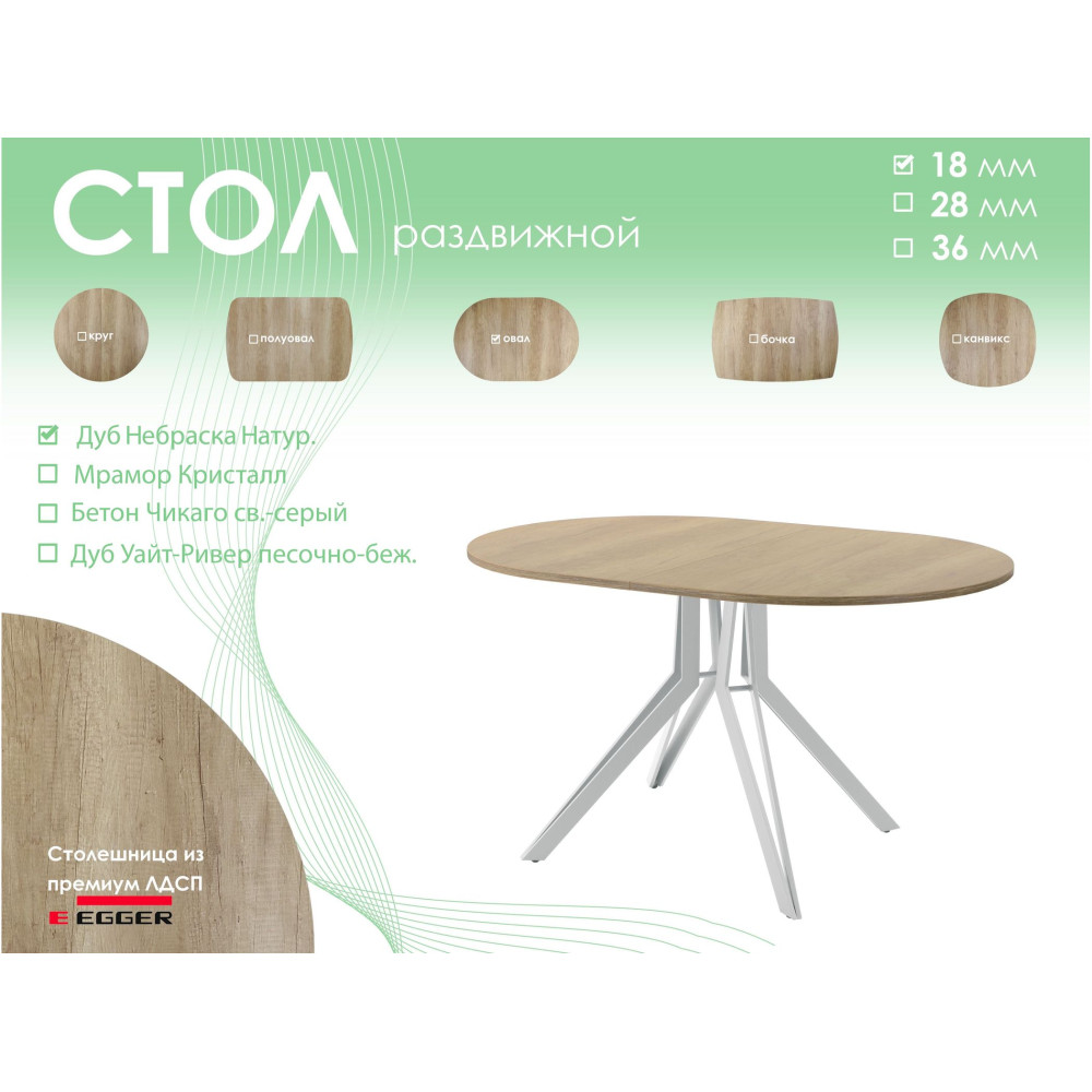 Тип столаобеденный стол Форма поставкив разобранном виде Форма столешницыовал