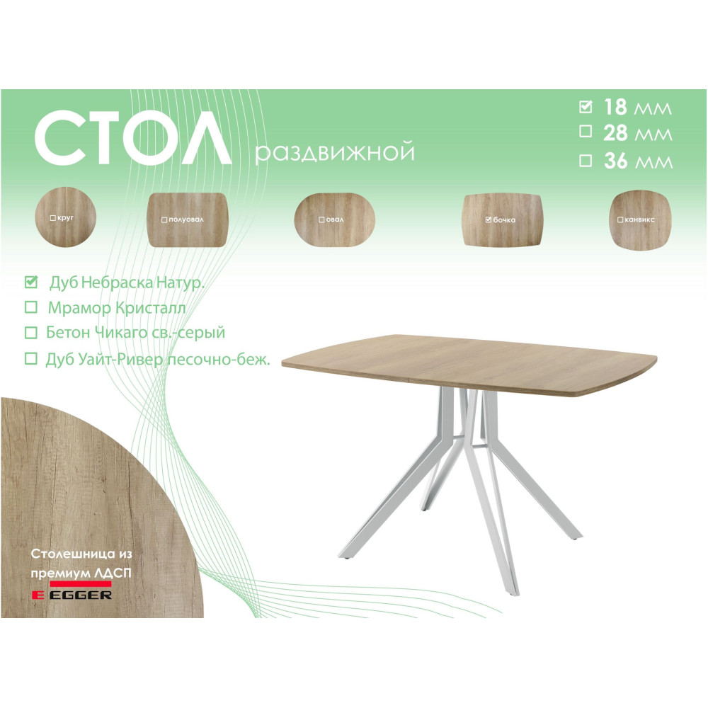 Тип столаобеденный стол Форма поставкив разобранном виде Форма столешницыбочка