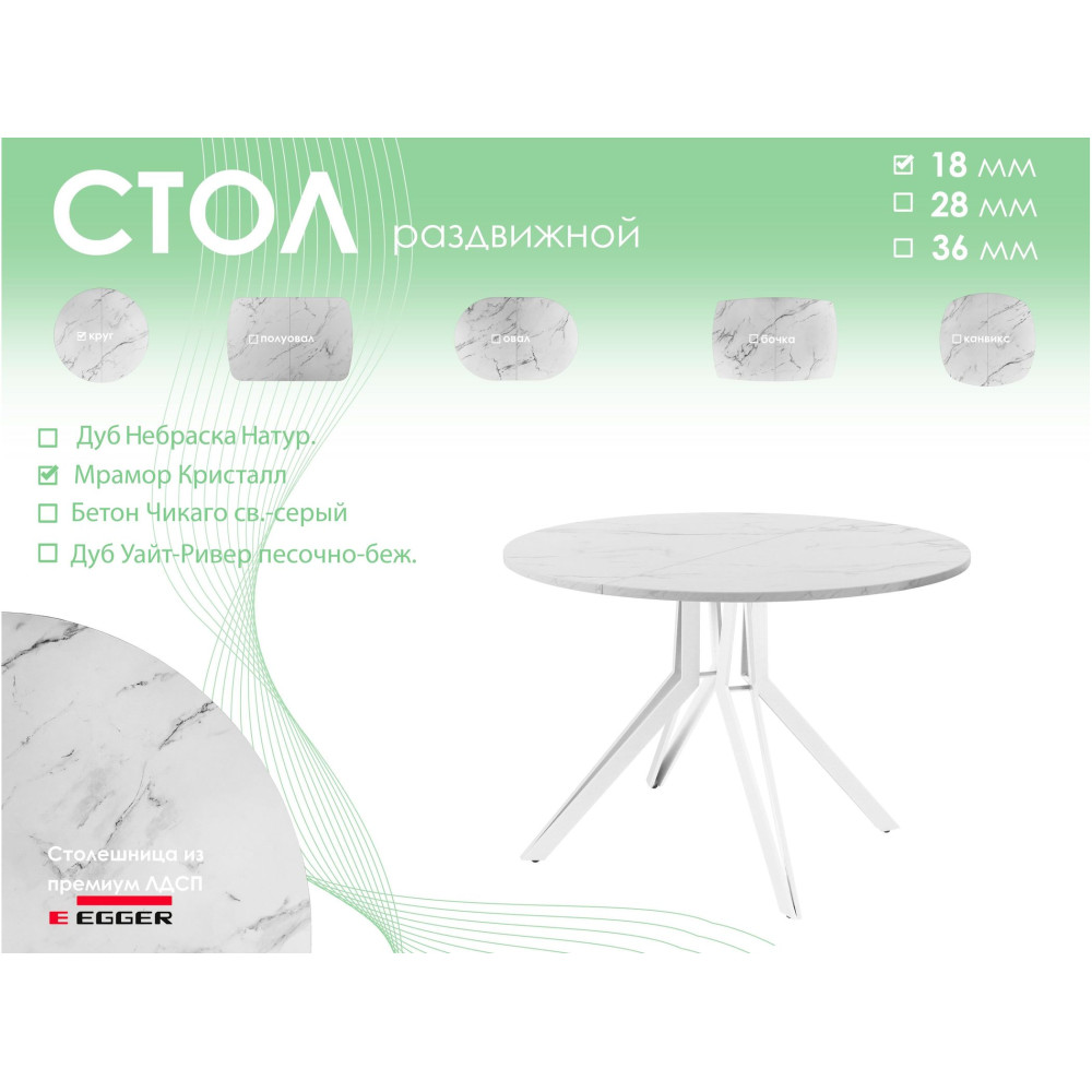 | Тип столаобеденный стол | Форма поставкив разобранном виде | Форма столешницыкруг |