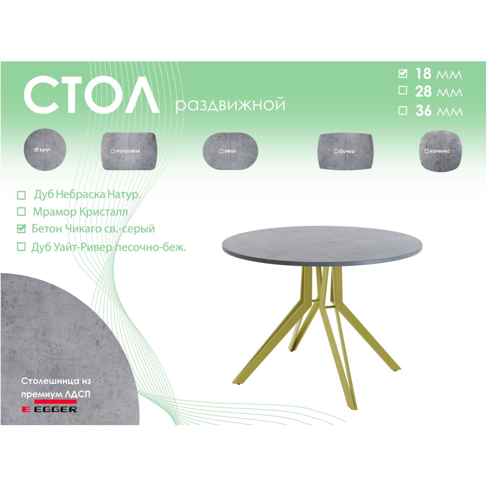 Тип столаобеденный стол | Форма поставкив разобранном виде | Форма столешницыкруг |