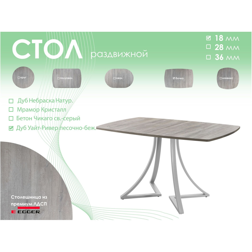 Технические характеристики Обеденный стол AMC Elite (серии SLIM) / E24(1100) D6 (серебро/Дуб Уайт-Ривер песочно-бежевый)