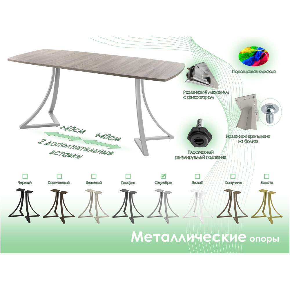 На складе Код товара: E18 800 D1vn.kod.800+400+400.5.4 Обеденный стол AMC Elite (серии SLIM) / E18(800) D1 (серебро/Дуб Небраска Натуральный)