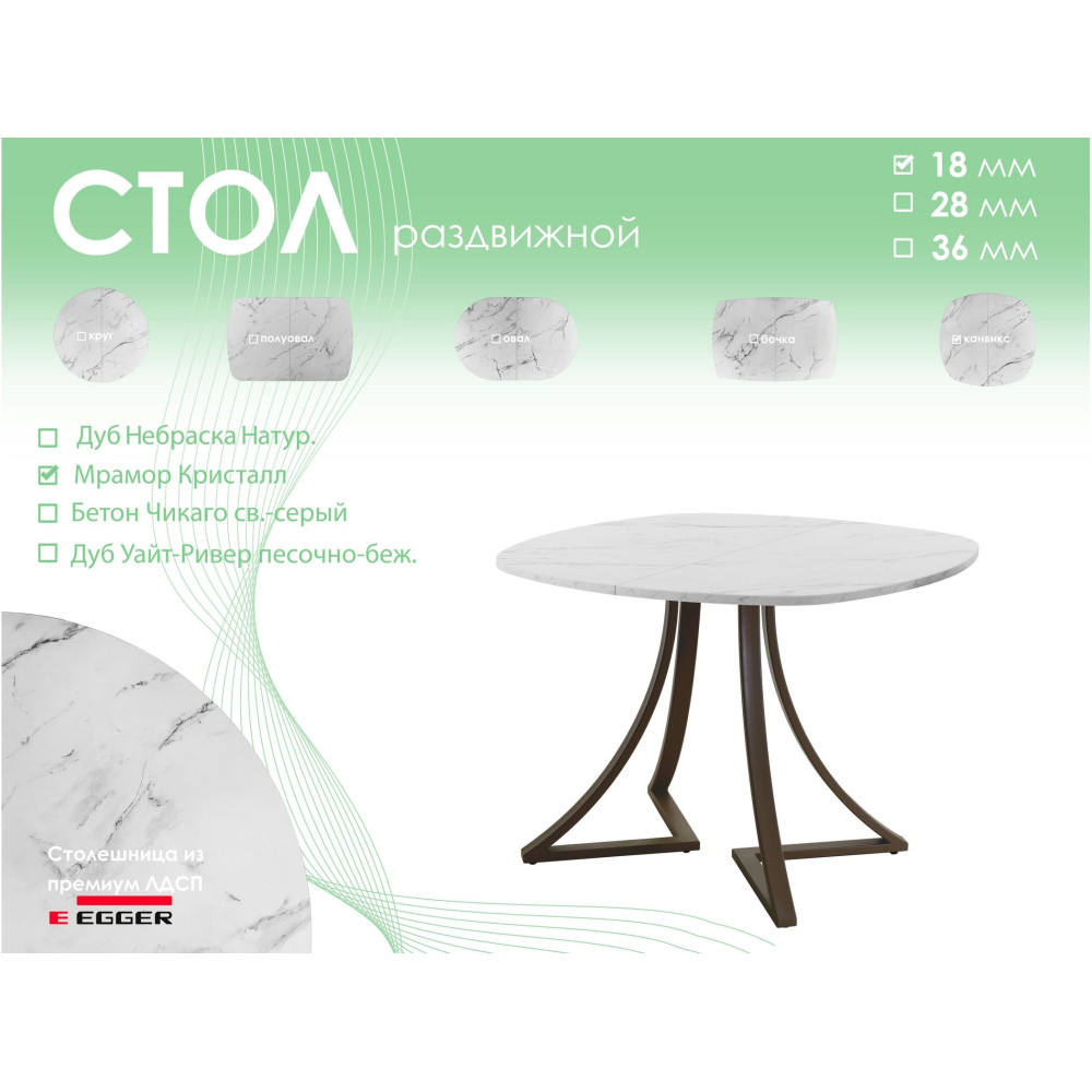 Тип столаобеденный стол | Форма поставкив разобранном виде | Форма столешницыканвикс |