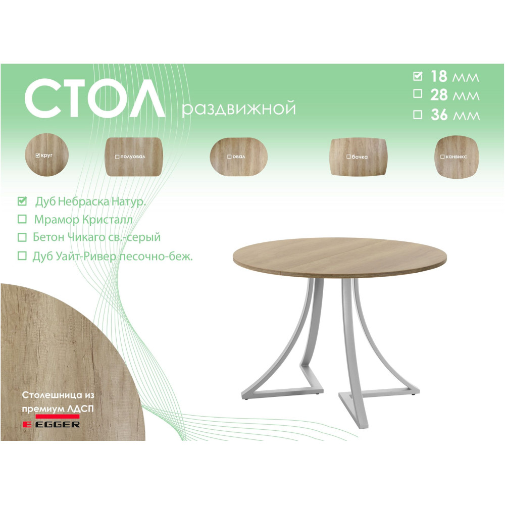 Тип столаобеденный стол Форма поставкив разобранном виде Форма столешницыкруг