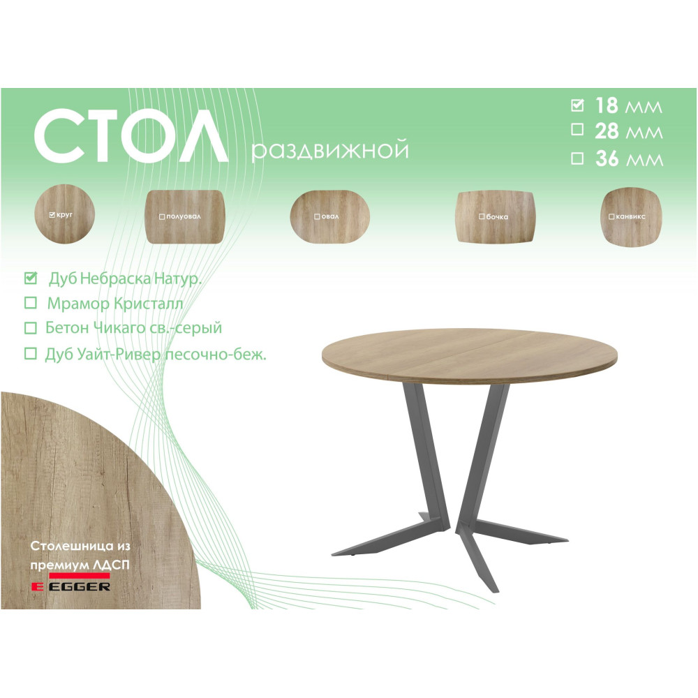 Тип столаобеденный стол | Форма поставкив разобранном виде | Форма столешницыкруг |
