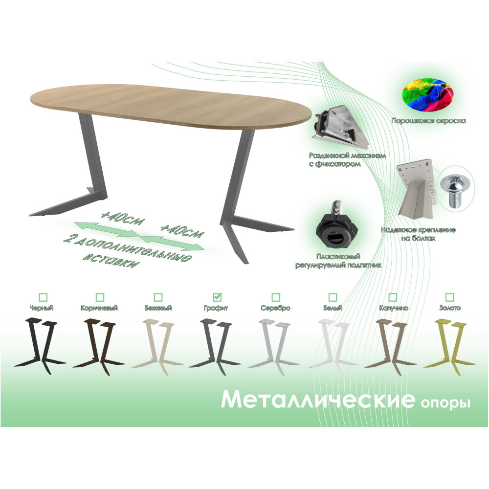 Стол AMС серии «SLIM» — это готовое решение для обеденной зоны дома, столовой или кафе. Раздвижной механизм с двумя вставками по 40 см позволяет увеличить столешницу, сохраняя пропорции и стиль. Стол оснащен двумя металлическими опорами с порошковой покраской, крепящимися болтами к столешнице, и регулируемыми подпятниками для защиты пола и выравнивания. Столешницы из ЛДСП «EGGER» толщиной 18 мм обеспечивают прочность и долговечность. Доступны различные формы столешниц (круг, канвикс, овал, полуовал, бочка) и комбинации опор и цветов. Поставляется в разобранном виде в транспортировочном коробе. Надежность конструкции гарантирует долгий срок службы при соблюдении правил эксплуатации.