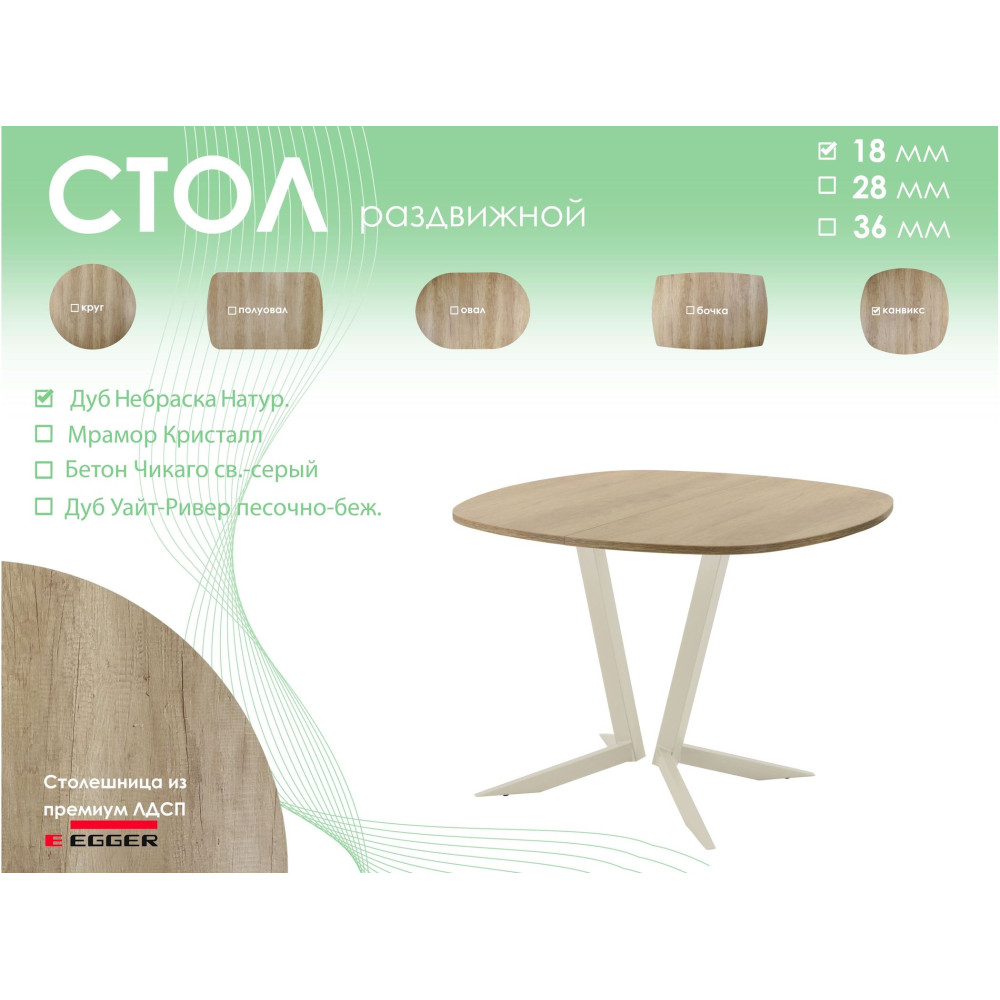 Тип столаобеденный стол | Форма поставкив разобранном виде | Форма столешницыканвикс |