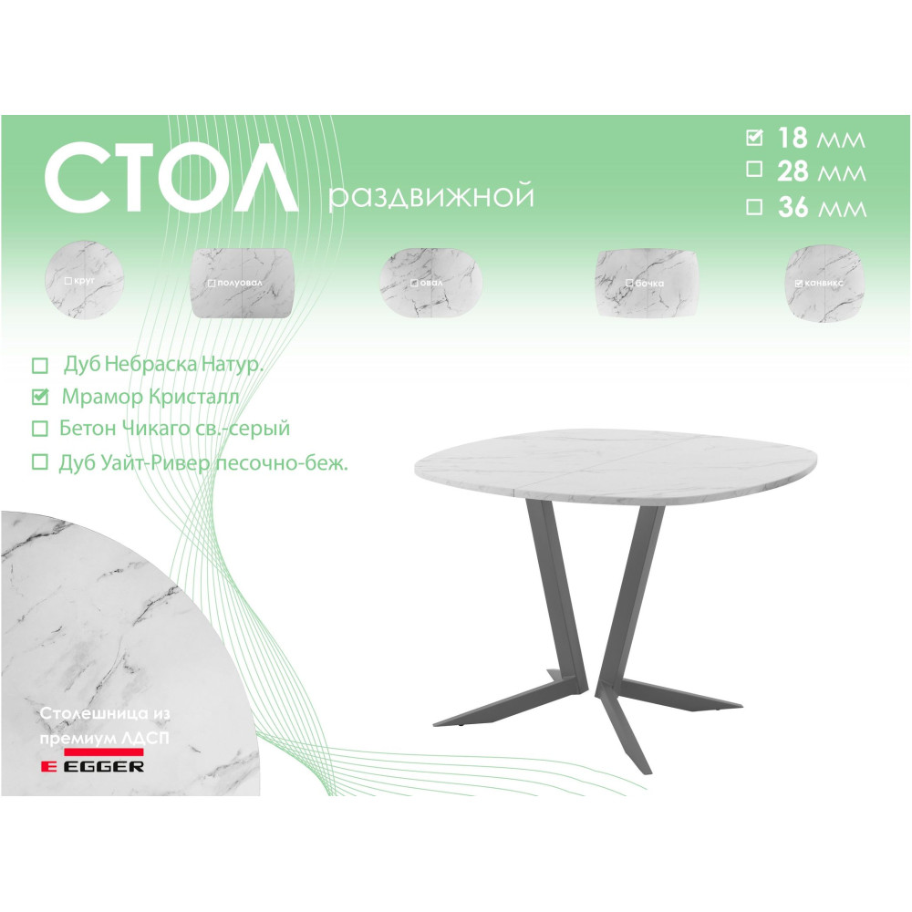 Тип столаобеденный стол | Форма поставкив разобранном виде | Форма столешницыканвикс |