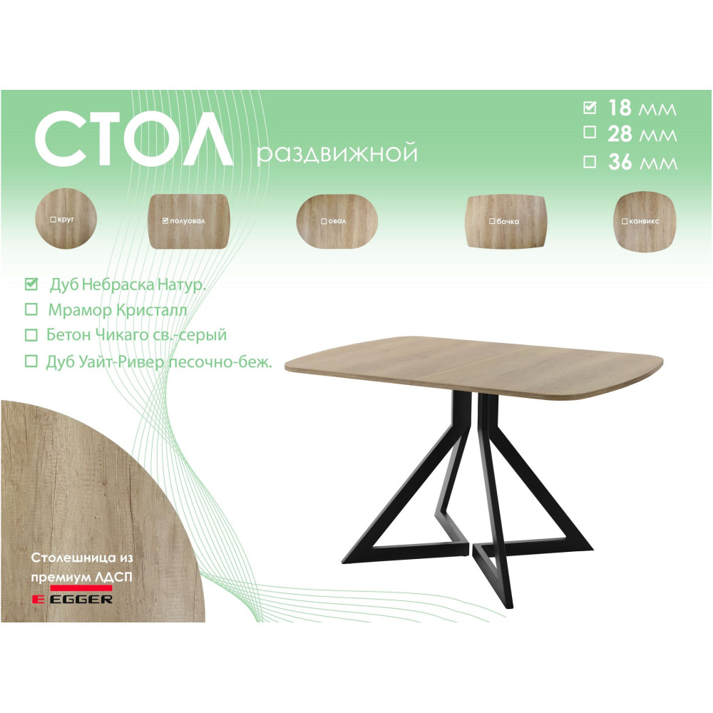 Тип столаобеденный стол Форма поставкив разобранном виде Форма столешницыполуовал
