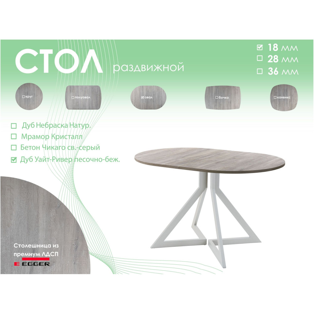 Тип столаобеденный стол | Форма поставкив разобранном виде | Форма столешницыовал |