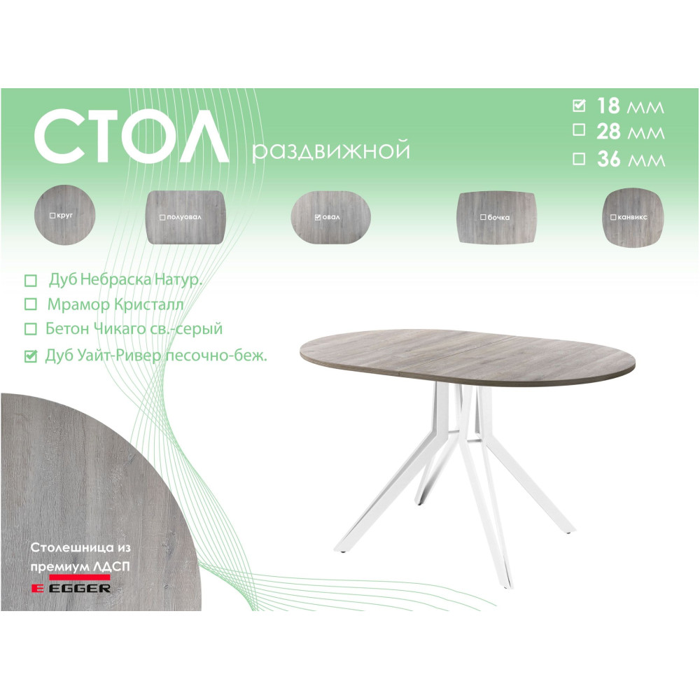 Обеденный стол AMC Elite (серии SLIM) / E21(1200) D3 (белый/Дуб Уайт-Ривер песочно-бежевый) 0 719.55BYN 959.40BYN