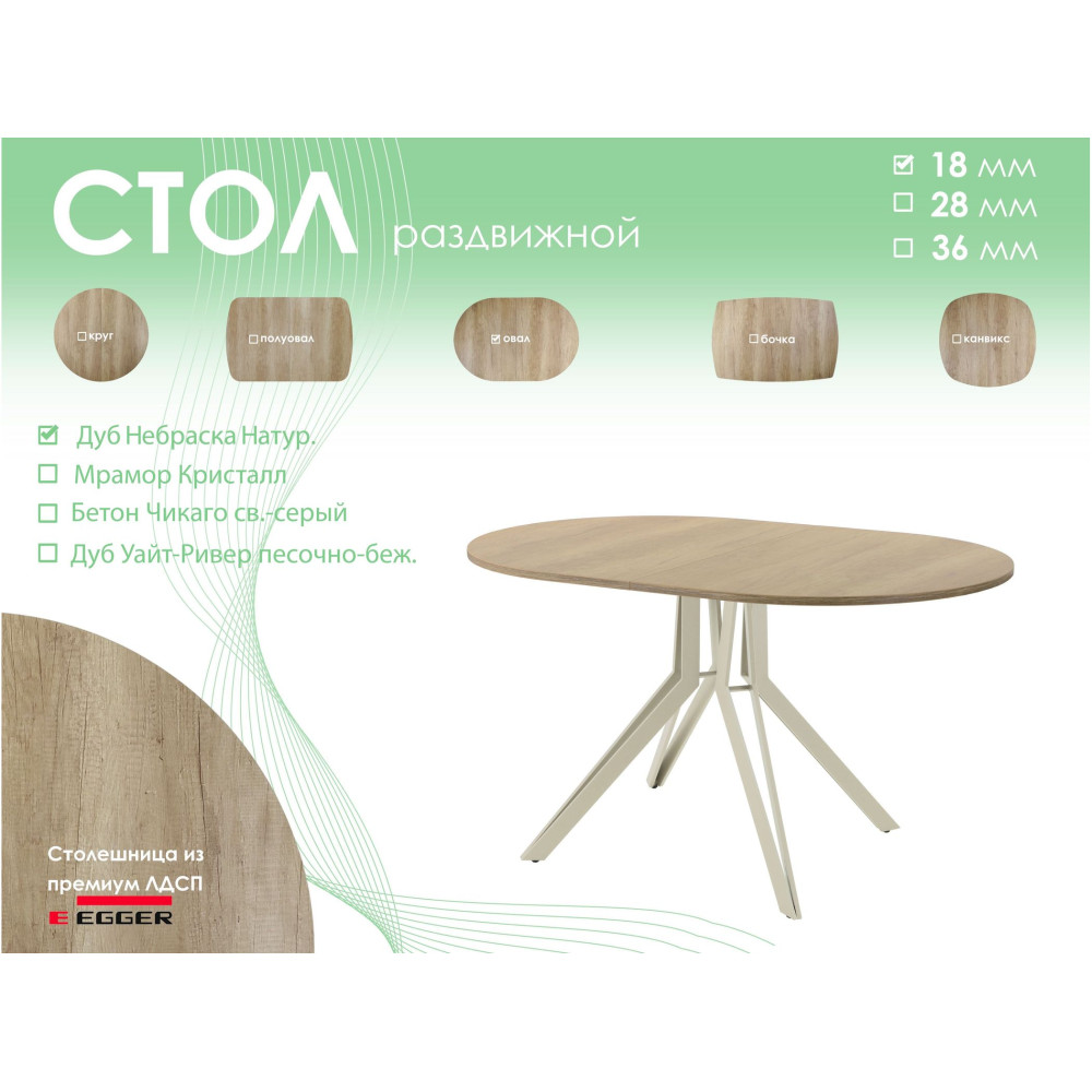 Тип столаобеденный стол Форма поставкив разобранном виде Форма столешницыовал