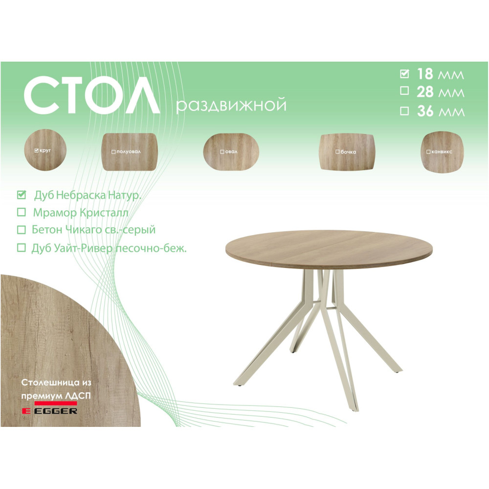 Тип столаобеденный стол Форма поставкив разобранном виде Форма столешницыкруг