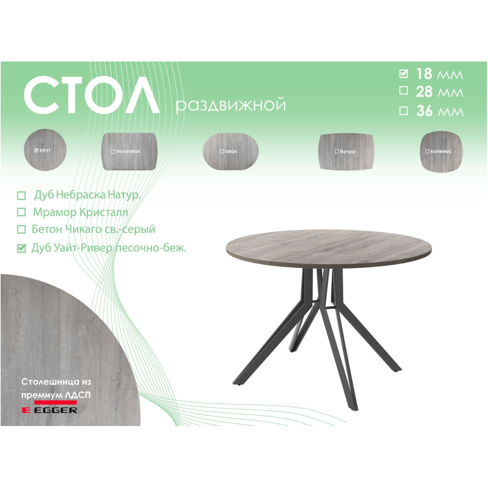 Тип столаобеденный стол Форма поставкив разобранном виде Форма столешницыкруг