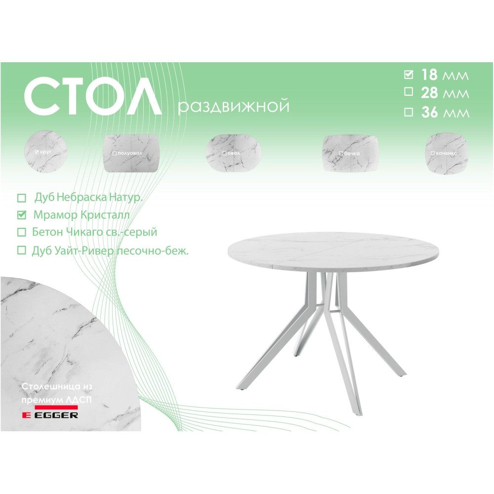 Обеденный стол AMC Elite (серии SLIM) / E21(900) D1 (серебро/Мрамор Кристалл) 0 696.15BYN 928.20BYN
