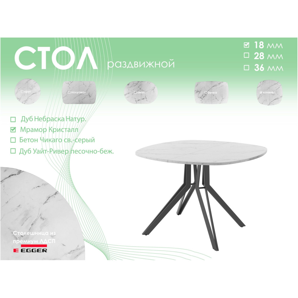 Тип столаобеденный стол | Форма поставкив разобранном виде | Форма столешницыканвикс |
