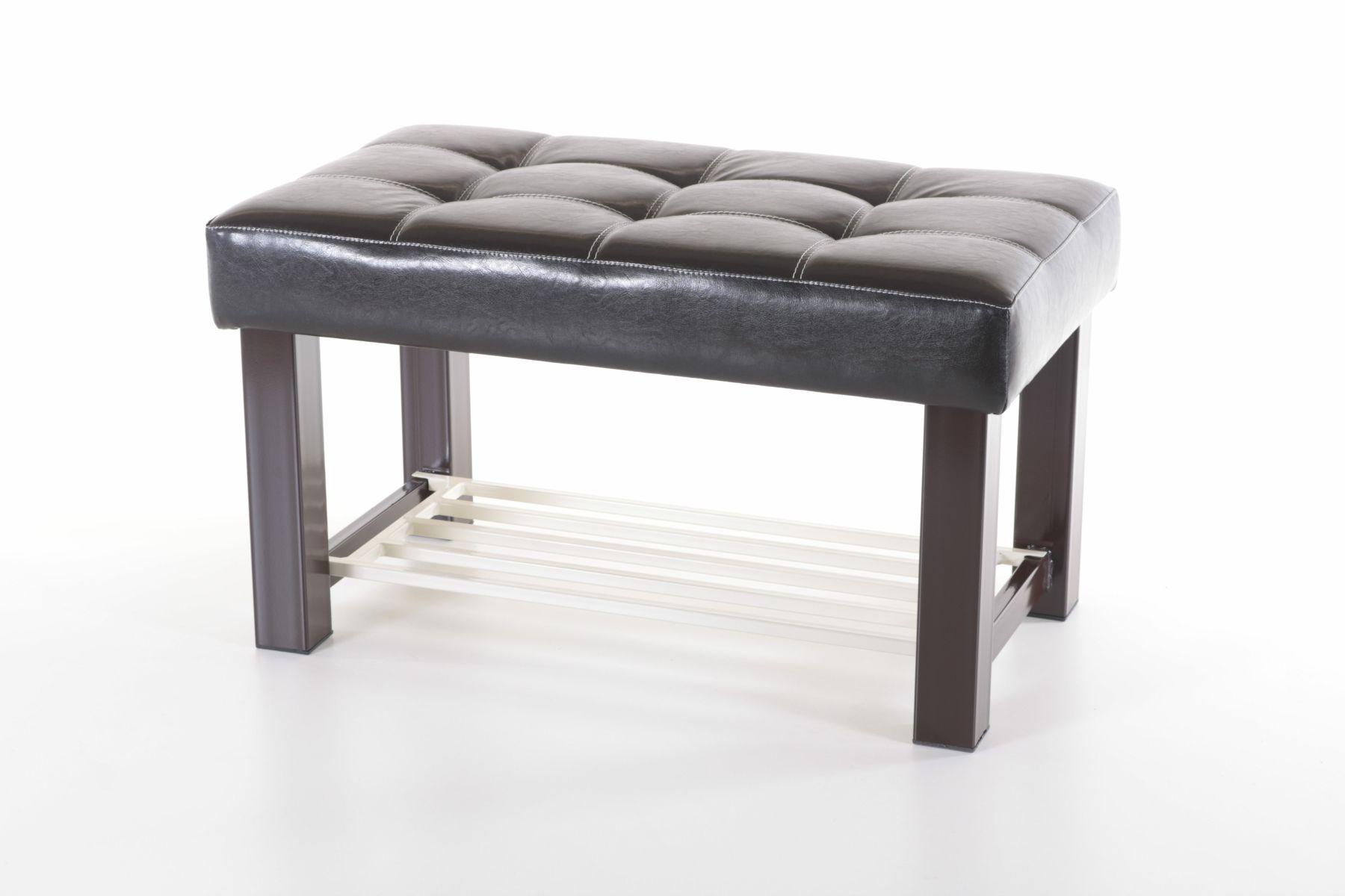 Каркас изготовлен из металла, материал обивки сидения – кож.зам. премиум класса либо ткань (велюр) на Ваш выбор. Двойная строчка пуфика придает изделиям не только красоту, но и надежность, поскольку выполнена высокопрочной полиэфирной нитью, которая устойчива к истиранию и обладает отличной светостойкостью. Пластиковые подпятники на ножках позволят бережно эксплуатировать мебель на любом покрытии пола.