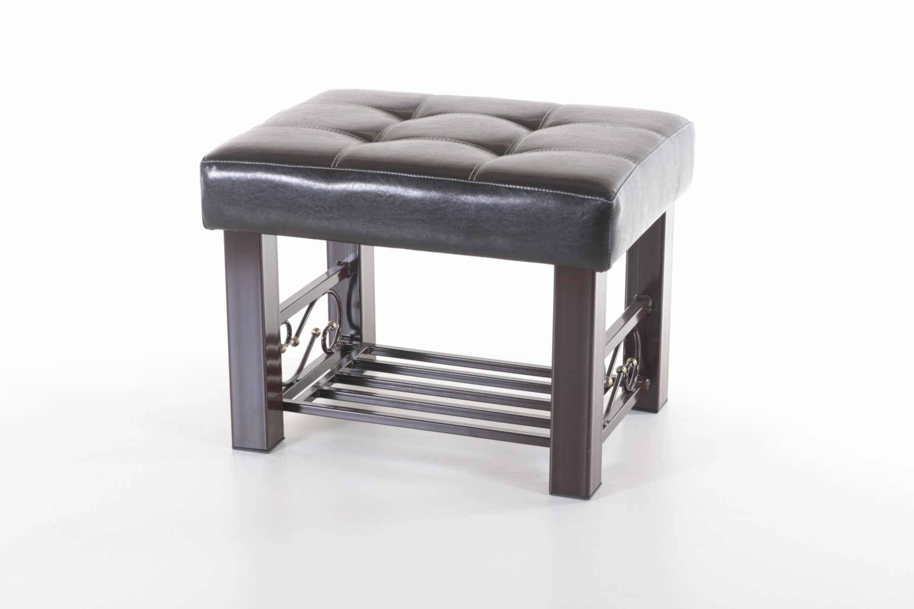 Каркас изготовлен из металла, материал обивки сидения – кож.зам. премиум класса либо ткань (велюр) на Ваш выбор. Двойная строчка пуфика придает изделиям не только красоту, но и надежность, поскольку выполнена высокопрочной полиэфирной нитью, которая устойчива к истиранию и обладает отличной светостойкостью. Пластиковые подпятники на ножках позволят бережно эксплуатировать мебель на любом покрытии пола.