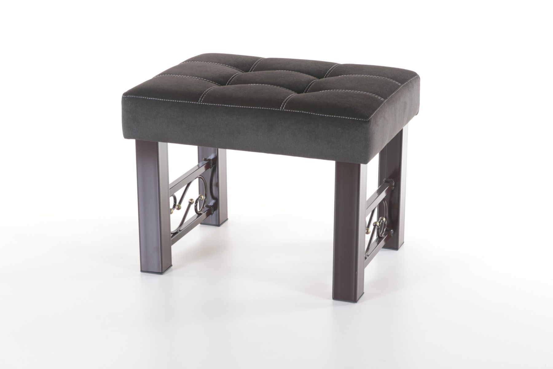 Каркас изготовлен из металла, материал обивки сидения – кож.зам. премиум класса либо ткань (велюр) на Ваш выбор. Двойная строчка пуфика придает изделиям не только красоту, но и надежность, поскольку выполнена высокопрочной полиэфирной нитью, которая устойчива к истиранию и обладает отличной светостойкостью. Пластиковые подпятники на ножках позволят бережно эксплуатировать мебель на любом покрытии пола.